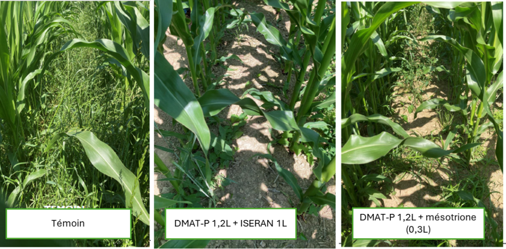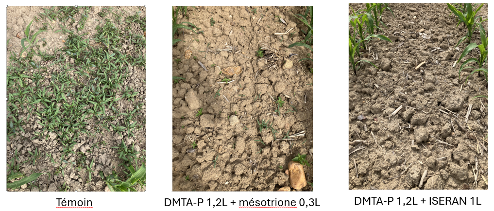 L’agriculteur n’a pas eu besoin de réaliser une application de rattrapage dans la partie Iseran + DMTA-P, contrairement à la modalité traitée avec DMTA-P associé à la mésotrione seule.